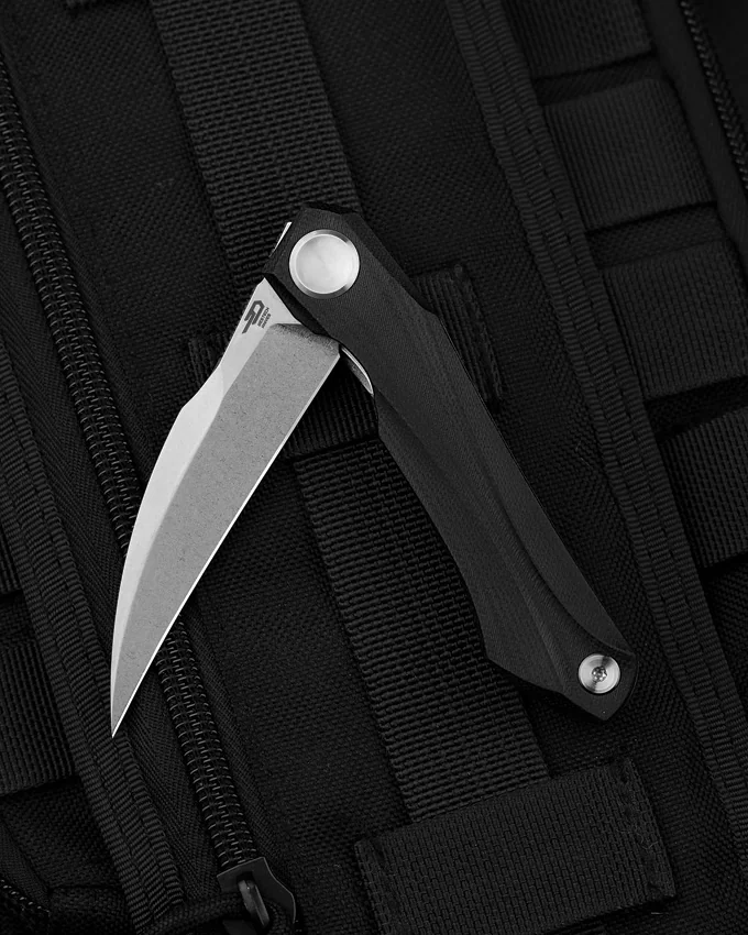 4″ (10.16cm) closed. 3″ (7.62cm) stonewash finish 14C28N Sandvik stainless blade. Black G10 handle. Extended tang. Pocket clip. Boxed.