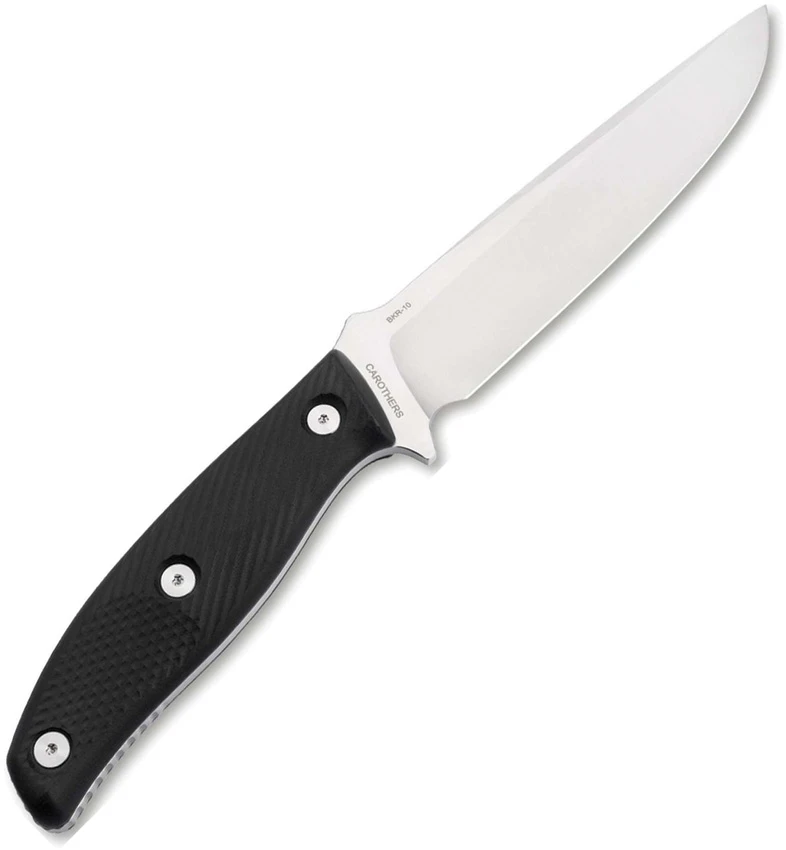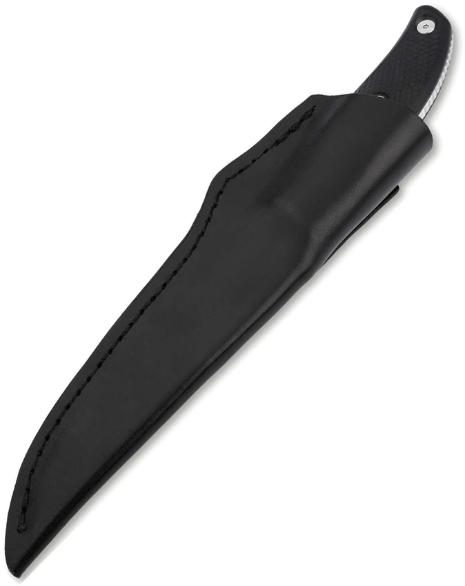11″ (27.94cm) overall. 6″ (15.24cm) satin finish VG-10 stainless blade. Black G10 handle. Full tang. Black leather belt sheath. Gift boxed.