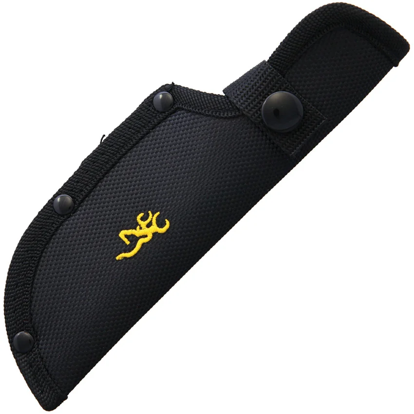 8.75″ (22.23cm) overall. 3.75″ (9.53cm) black coated stainless blade. Black laminated wood handle. Stainless guard and pommel. Black nylon belt sheath. Boxed.