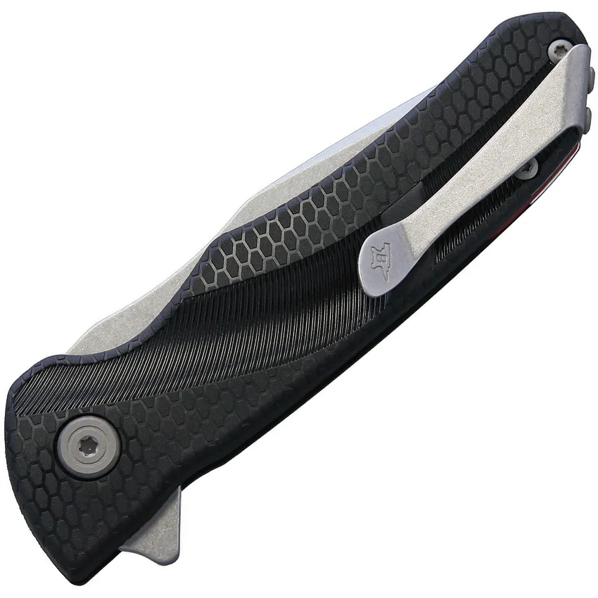 4.38″ closed. 3.13″ stonewash finish 420HC stainless drop point blade. Black glass filled nylon handle. Extended tang. Pocket clip. Boxed.