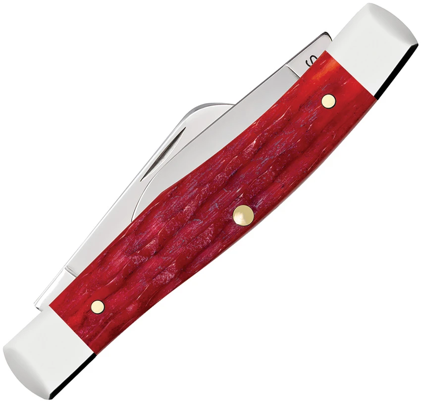63032 SS pattern. 3.63″ (9.22cm) closed. Mirror finish stainless clip, sheepsfoot, and pen blades. Indian Paint Brush Kinfolks jigged bone handle. Nickel silver bolster(s). Inlay shield. Boxed.