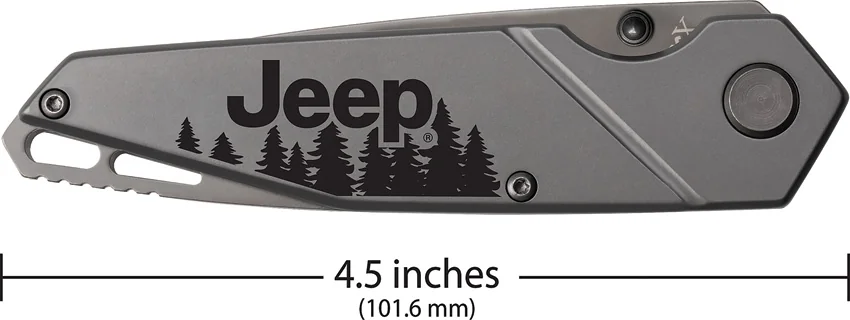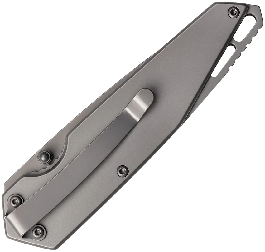 T0074.ST pattern. 4.5″ (11.43cm) closed. 3.25″ (8.26cm) gray titanium coated stainless blade. Gray titanium finish stainless handle. Thumb stud. Lanyard hole. Pocket clip. Boxed.