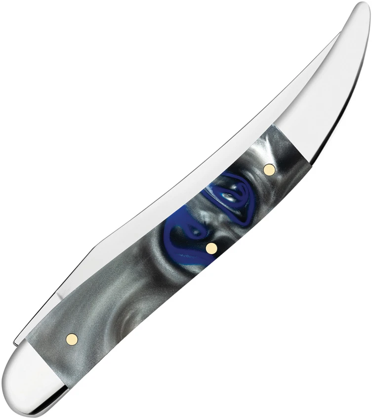 1010094 SS pattern. 4.25″ (10.8cm) closed. Mirror finish stainless long clip blade. Pacific Tides Kirinite handle. Nickel silver bolster(s). Inlay shield. Boxed.