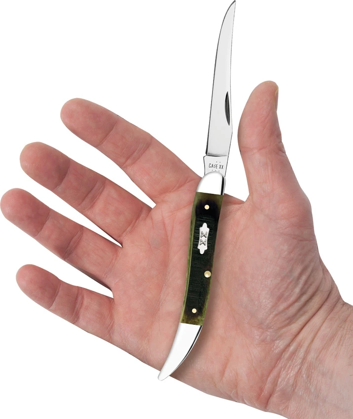 Case Knives Medium Texas Toothpick Knife 2.75″ Olive Green Sawcut Bone 610094 SS Prices Online