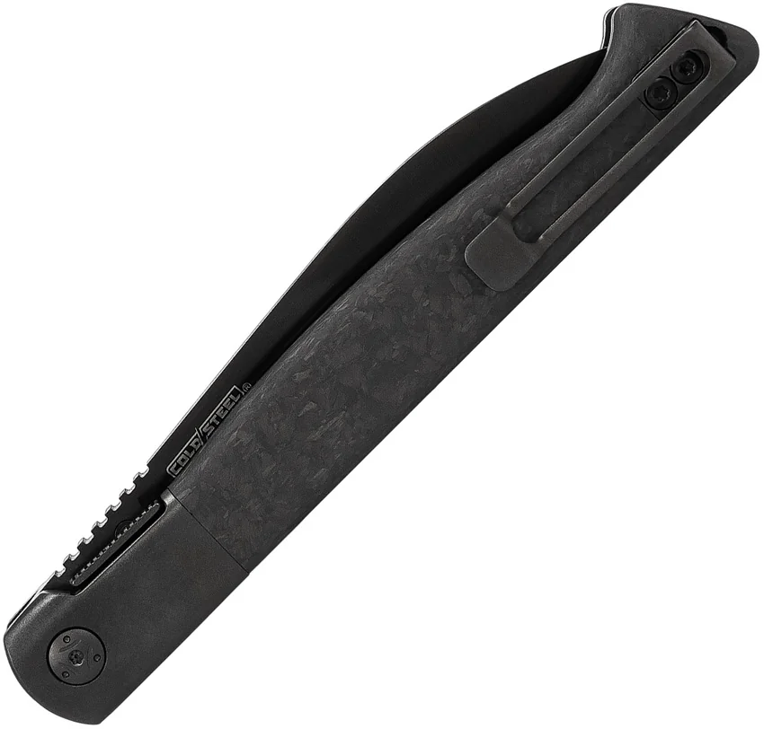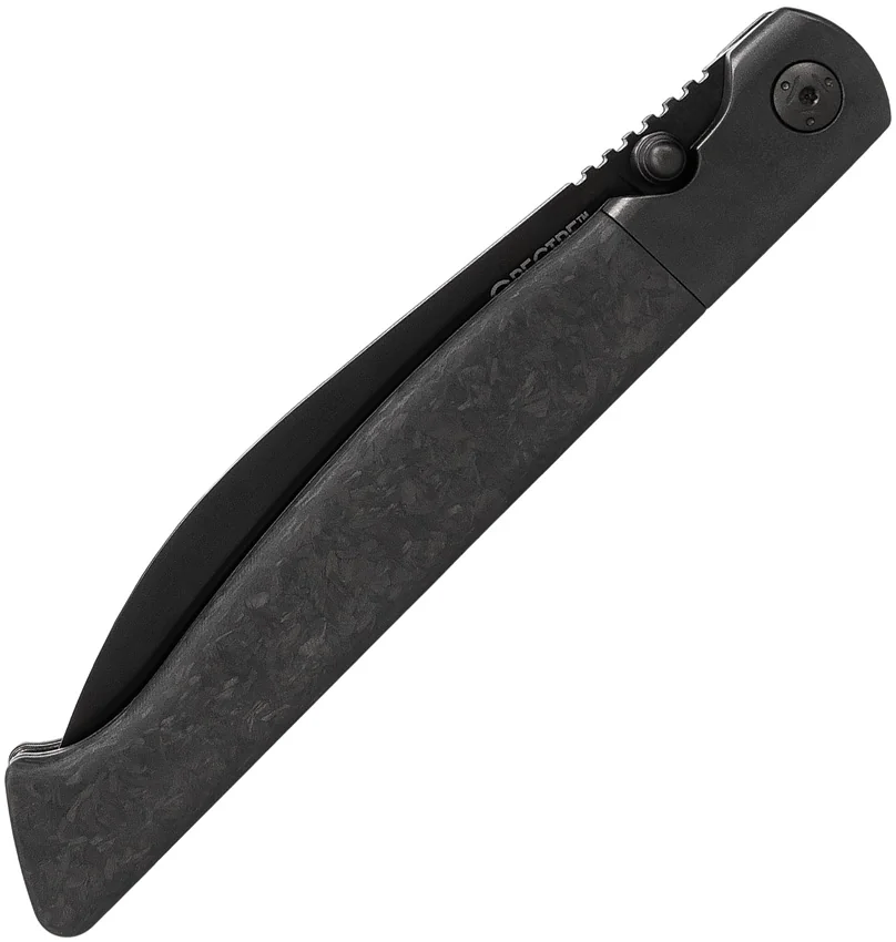 5″ (12.7cm) closed. 3.75″ (9.53cm) black PVD coated CPM-20CV stainless hawkbill blade. Carbon fiber handle. Thumb stud. Pocket clip. Boxed.