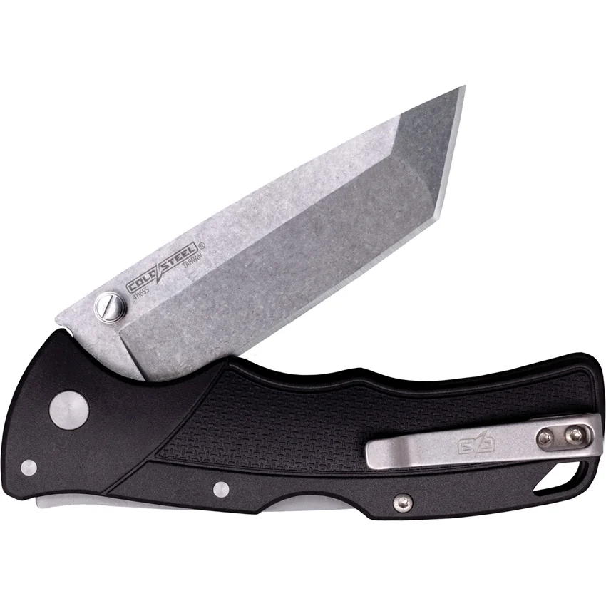 4.25″ (10.8cm) closed. 3″ (7.62cm) stonewash finish 4116 stainless tanto blade. Black GFN handle. Thumb stud. Lanyard hole. Pocket clip. Boxed.
