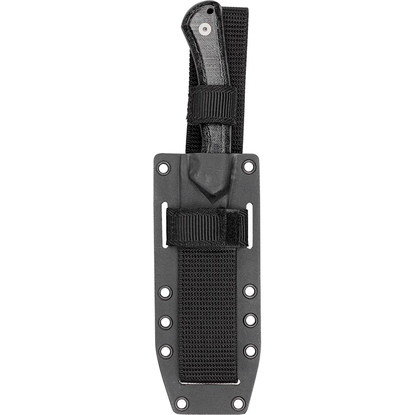 9.25″ (23.5cm) overall. 4.5″ (11.43cm) satin finish 14C28N Sandvik stainless blade. Black micarta handle. Full tang. Lanyard hole. Flat grind with second bevel. Black Kydex MOLLE compatible belt sheath. Boxed.
