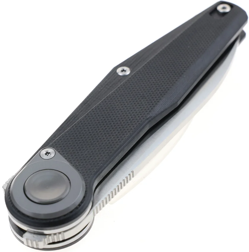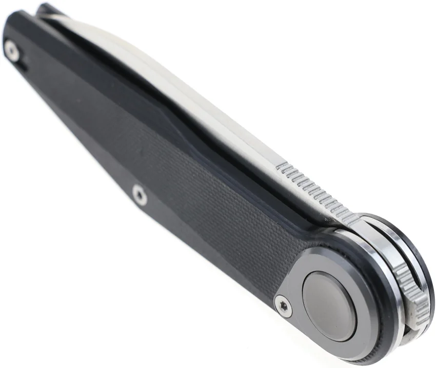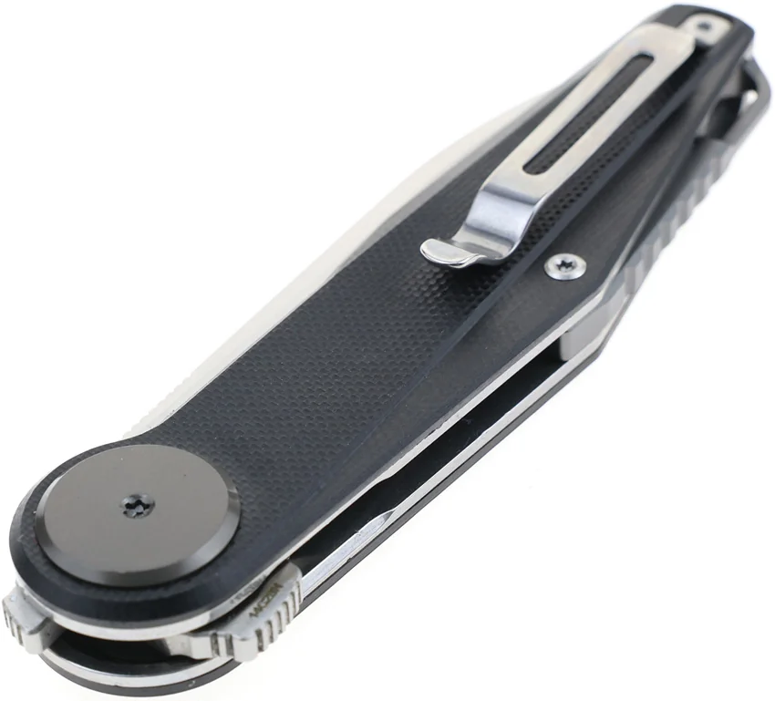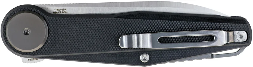 4.25″ (10.8cm) closed. 3.25″ (8.26cm) satin finish 14C28N Sandvik stainless blade. Black G10 handle. Pocket clip. Lanyard hole. Extended tang. Boxed.