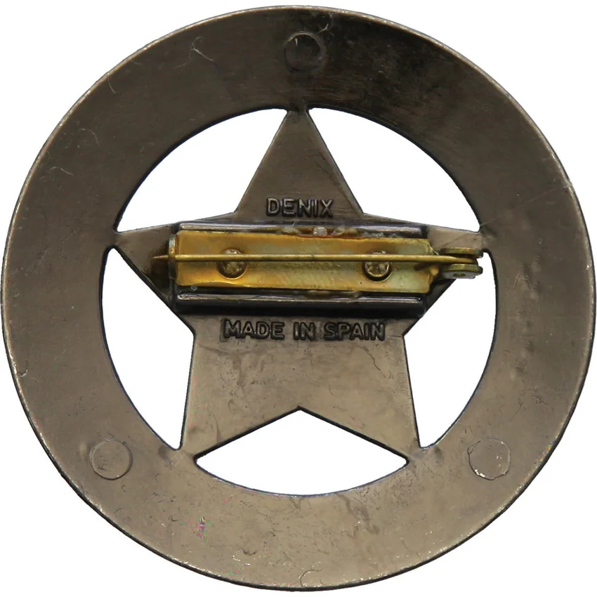 Satin finish metal construction. 2.25″ diameter. Pin back. Bulk packed.