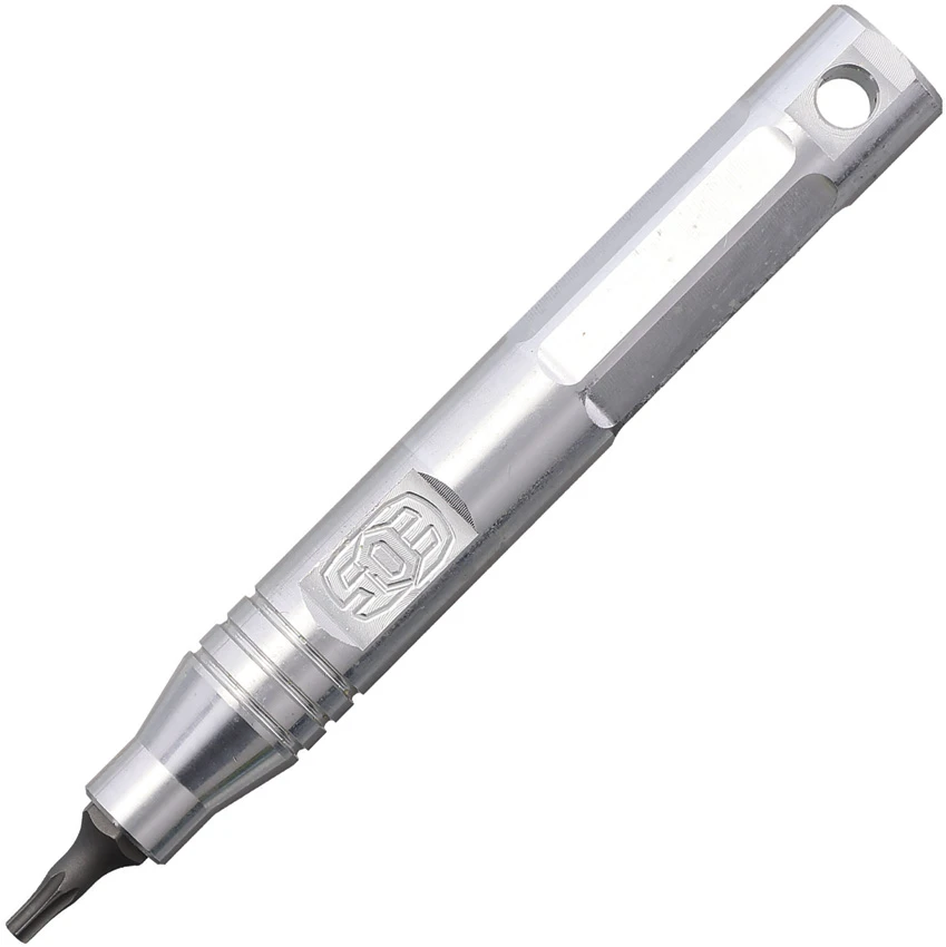 Includes: (1) Full set screws; (2) Full set O-rings; (1) Custom EOS keychain driver; Bit for screw. Style 2.0. Bagged.