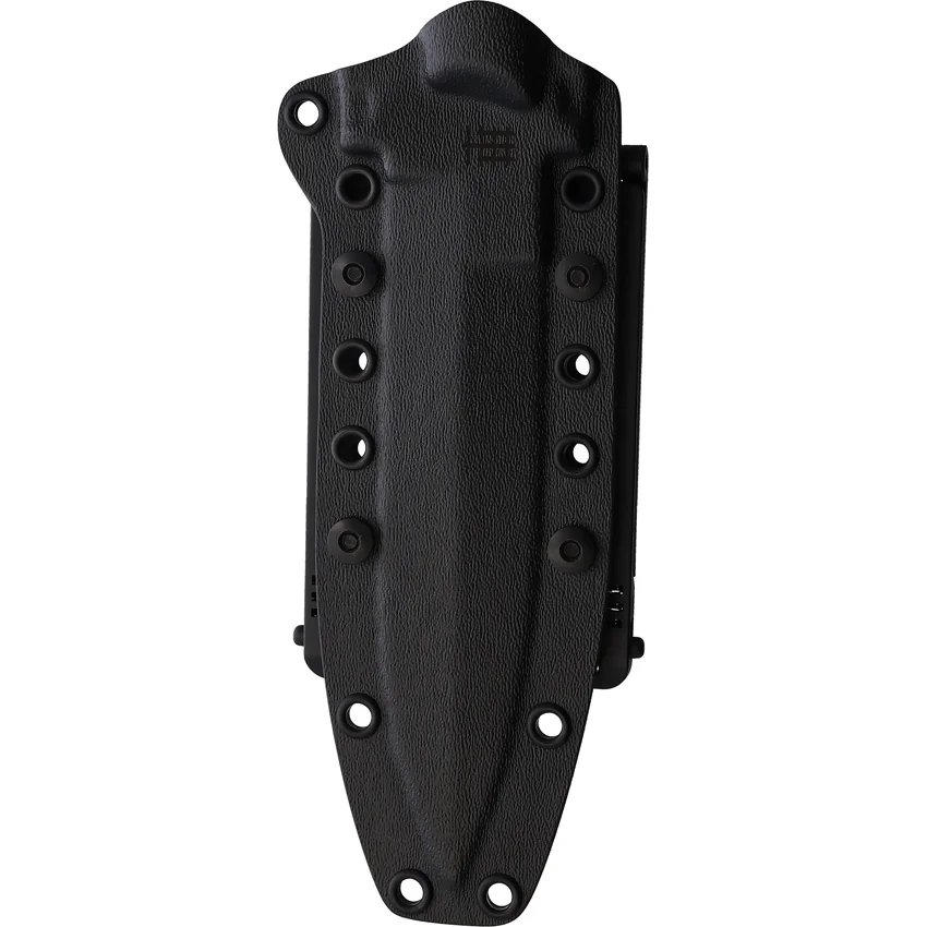 11.63″ (29.54cm) overall. 6.5″ (16.51cm) black Teflon coated partially serrated premium steel spear point blade. Dark Earth sculpted G10 handle. Full, extended tang. Lanyard hole. Crusher pommel ideal for breaking glass and other hammering tasks. Black Kydex MOLLE compatible belt sheath. Boxed.