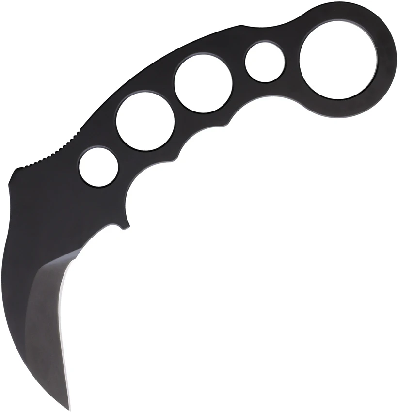 6.4″ (16.26cm) overall. 2.13″ (5.41cm) black PVD coated D2 tool steel blade. One-piece construction. Finger ring. Kydex belt sheath designed by Hawg Holsters. Includes neck lanyard and UltiClip. Zippered storage case.