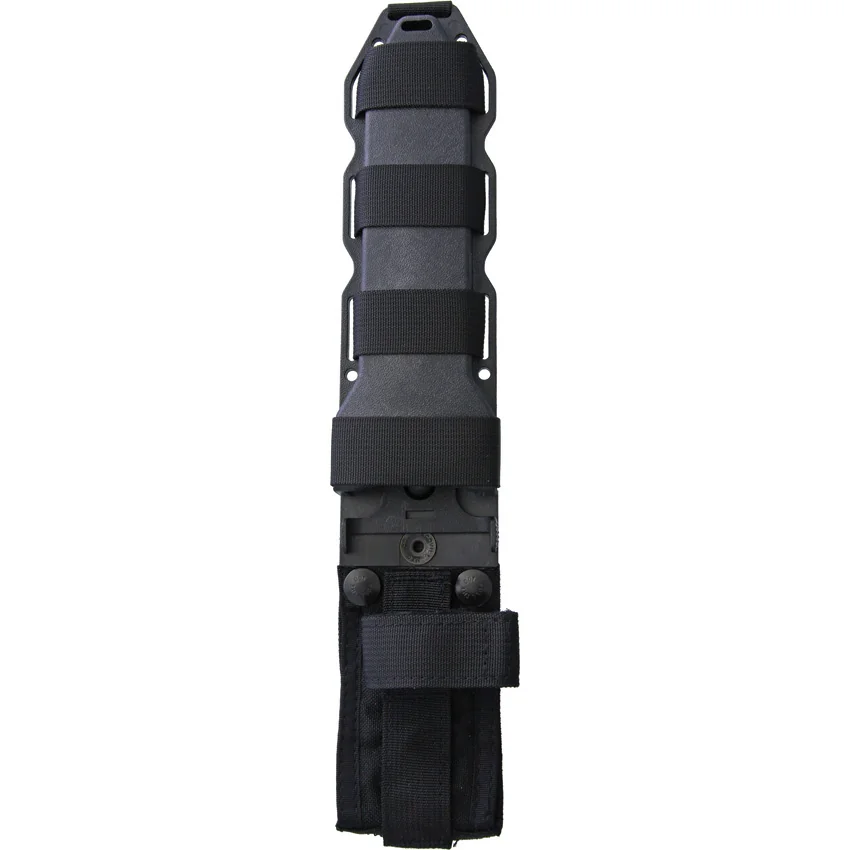 12″ overall. 7″ black finish sawback A2 tool steel tanto blade. OD green checkered G10 handle. Full, extended tang. Glass breaker. Dual lashing holes. Black nylon belt sheath. Boxed.