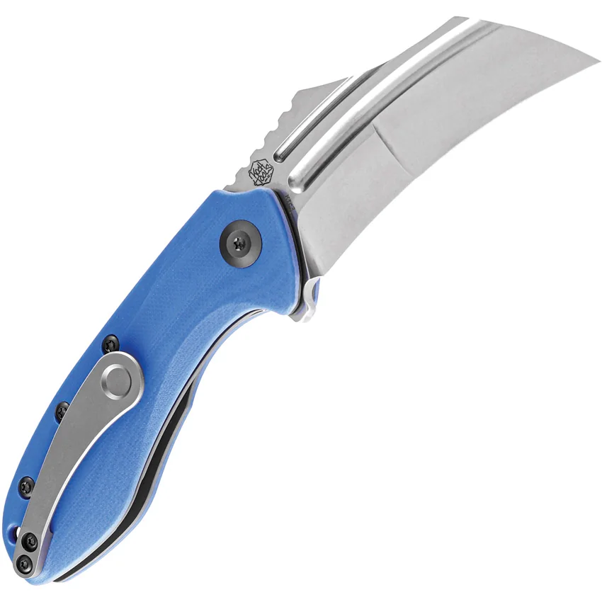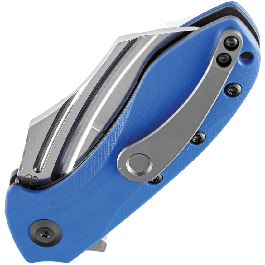 4″ (10.16cm) closed. 3″ (7.62cm) stonewash finish 154CM stainless blade. Blue G10 handle. Extended tang. Lanyard hole. Pocket clip. Black nylon pouch. Boxed.