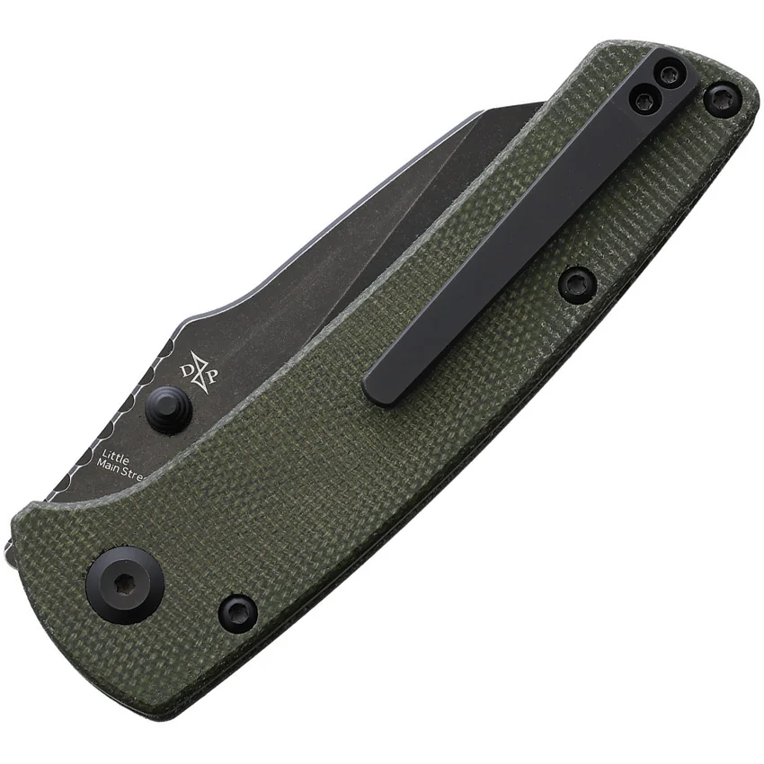 4.5″ (11.43cm) closed. 3.5″ (8.89cm) black stonewash finish 154CM stainless blade. Green micarta handle. Extended tang. Pocket clip. Thumb stud. Black nylon pouch. Boxed.