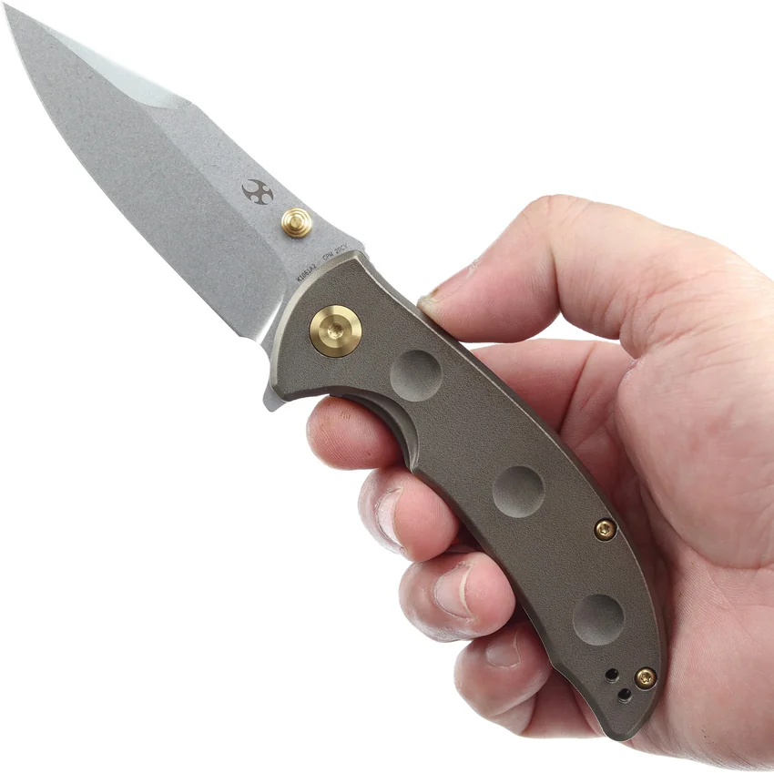 Kansept Knives Rei Frame Lock Knife Orange Peel Bronze Titanium (3.25″ SW) Prices Online