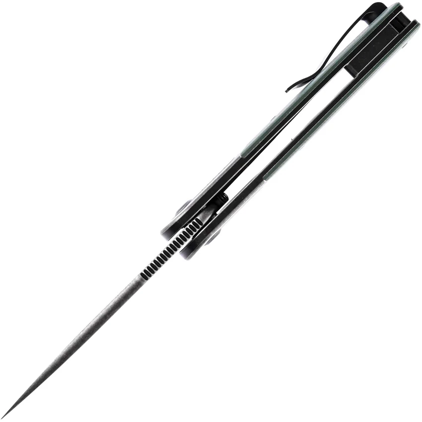 4.13″ (10.49cm) closed. 3.13″ (7.95cm) black stonewash finish CPM S35VN stainless blade. Green micarta handle. Titanium bolster(s). Pocket clip. Black nylon pouch. Boxed.