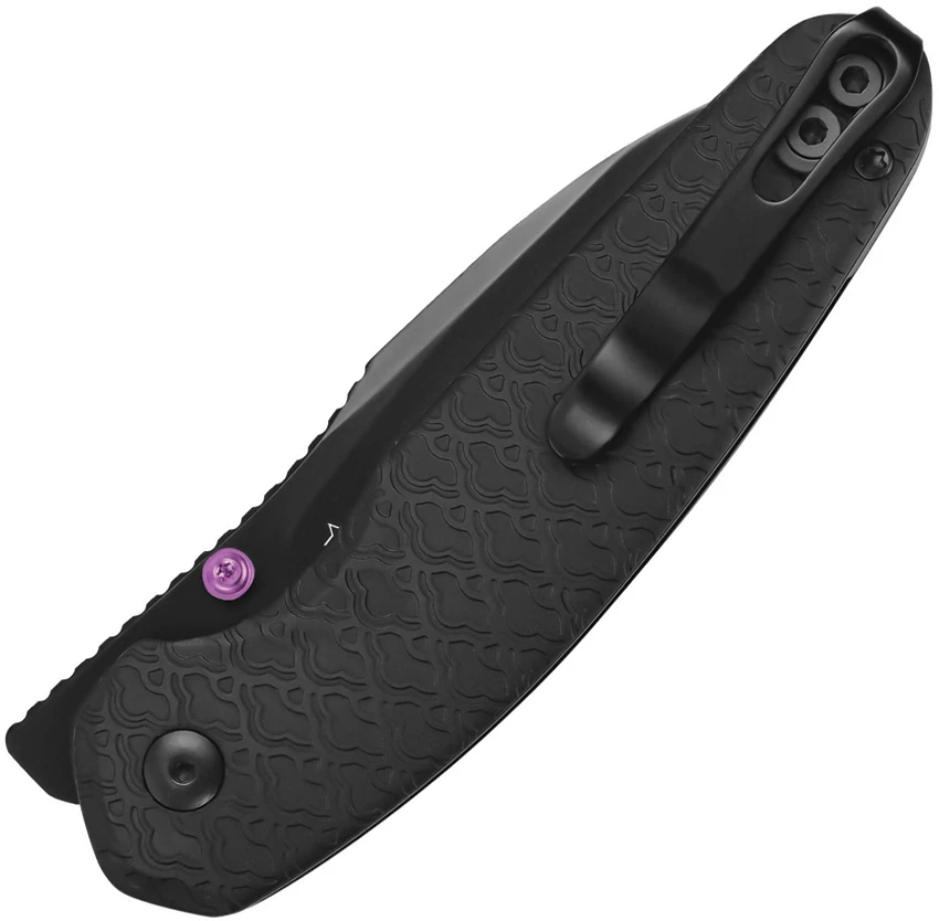 4.5″ (11.43cm) closed. 3.25″ (8.26cm) black PVD coated Nitro V steel drop point blade. Black aluminum handle. Thumb stud. Pocket clip. Extended tang. Boxed.