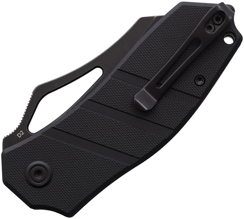 4.13″ (10.49cm) closed. 2.95″ (7.49cm) black finish D2 tool steel modified tanto blade. Black G10 handle. Thumb pull. Lanyard hole. Pocket clip. Boxed.
