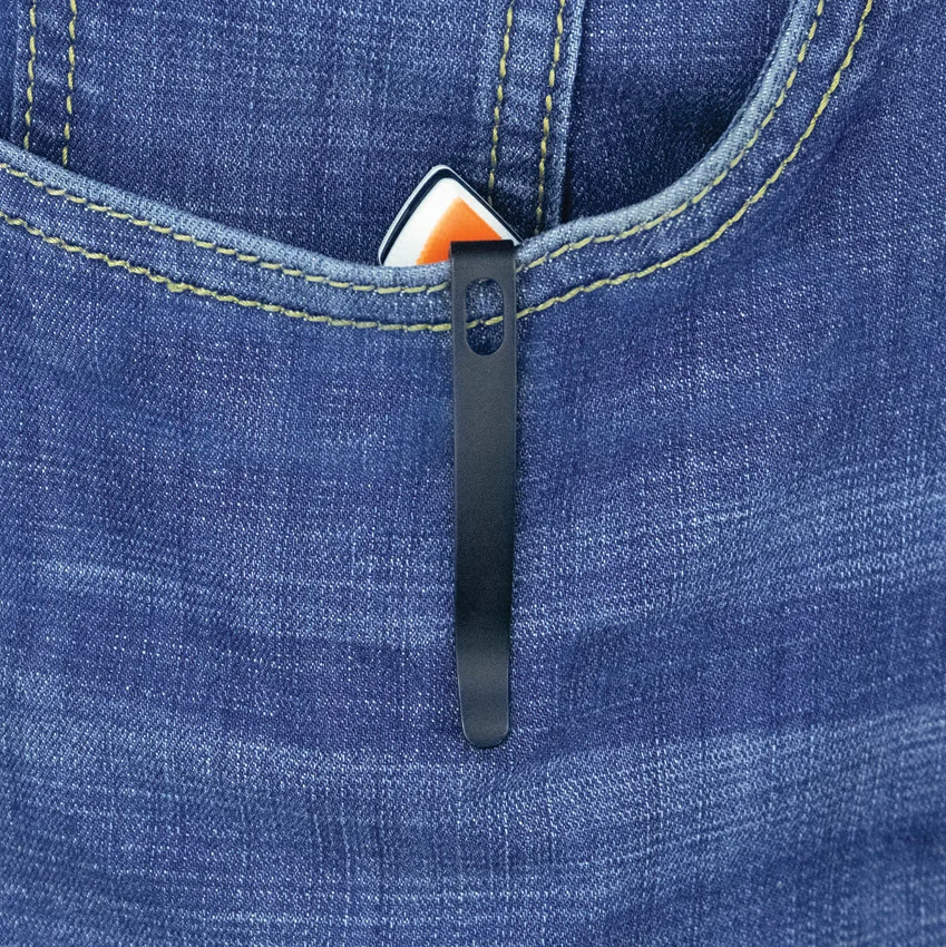 4.5″ (11.43cm) closed. 3.5″ (8.89cm) black stonewash finish 14C28N Sandvik stainless blade. Orange G10 handle. Extended tang. Pocket clip. Boxed.