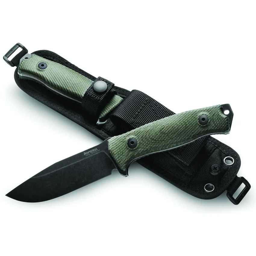 9.5″ (24.13cm) overall. 4.5″ (11.43cm) black PVD coated Sleipner tool steel blade. Green canvas micarta handle. Full, extended tang. Lanyard hole. Black Cordura belt sheath. Boxed.