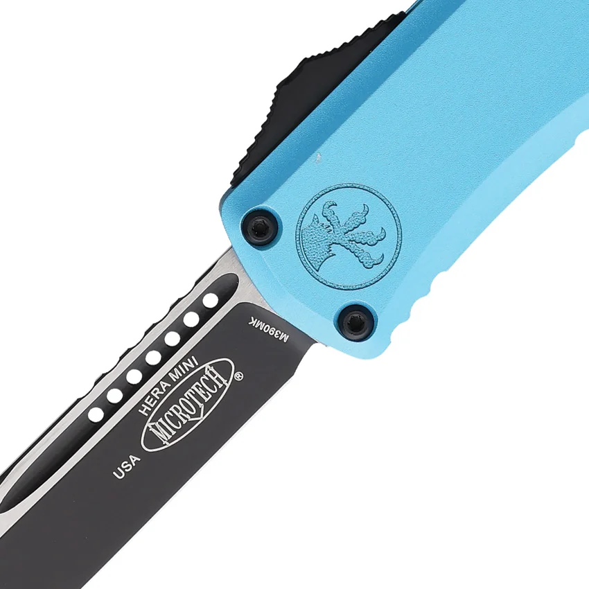 Microtech Hera II Mini S/E OTF Automatic Knife Turquoise Aluminum (3″ Black) Prices Online