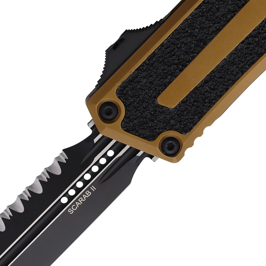 Microtech Scarab II Gen III D/E OTF Automatic Knife Tan Al (4″ Black Full Serr) Prices Online