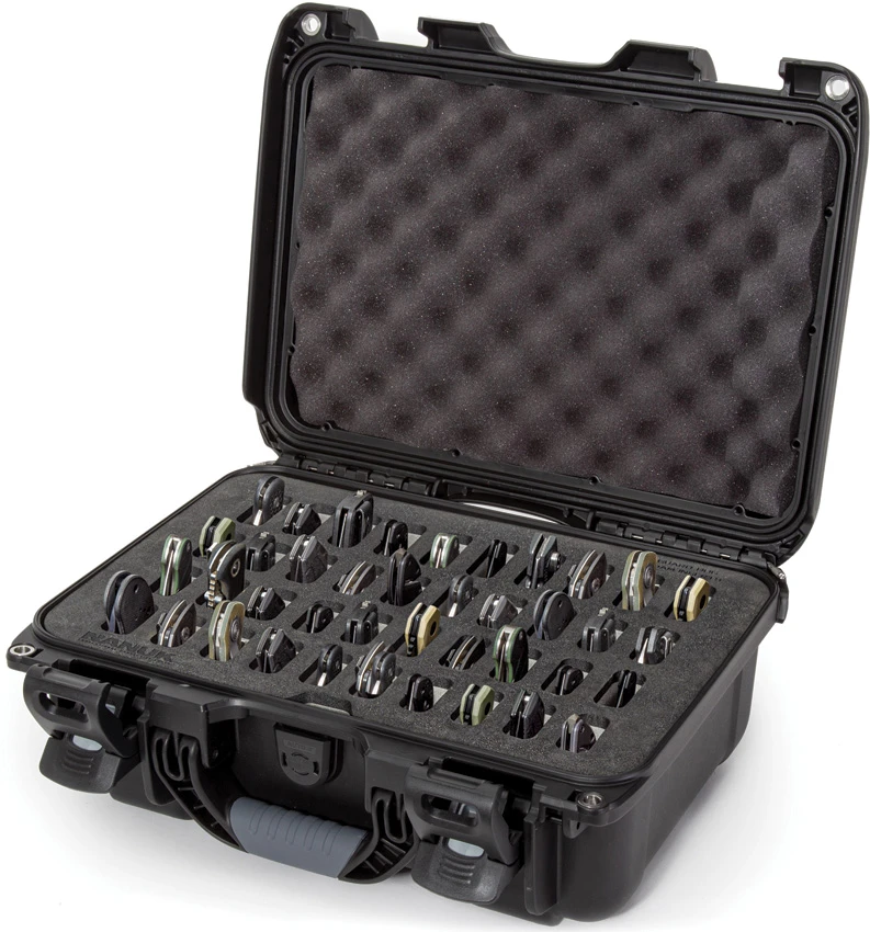 Dimensions: 15.4″ x 12.1″ x 6.8″. Weight: 4.89lb. Cross Linked Polyethylene (XLPE) foam interior is pre-cut to hold up to 40 knives aslong as 5 3/8″ (closed) and 1 3/4″ wide, including pocket clip. Interior dimensions: 13.8″ x 9.3″ x 6.2″. Double side-mounted PowerClaw superior latching system. Temperature range: Min -20F (-29C); Max 140F (60C). Automatic pressure release valve. Knives pictured not included. Crushproof Resin construction. Color: Black. Boxed.