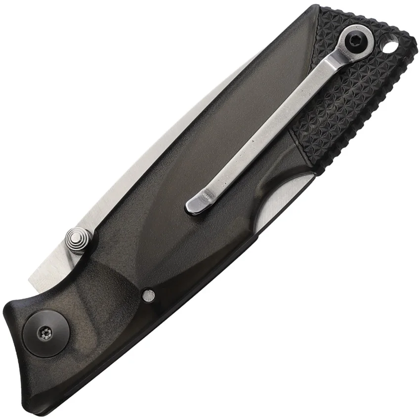 4″ (10.16cm) closed. 2.63″ (6.68cm) satin finish 1.4116 stainless blade. Gray plastic handle. Thumb stud. Lanyard hole. Pocket clip. Boxed.
