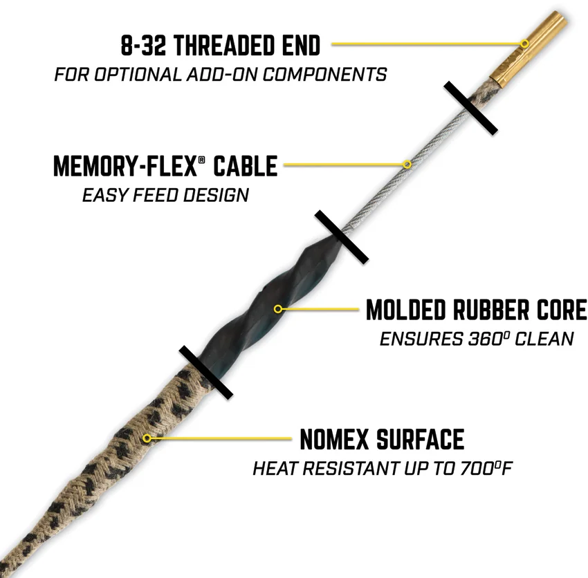 Cleans: .270. 10″ of aggressive cleaning surface. Caliber specific molded rubberized core for 360 degree cleaning. Heat resistant up to 700F. Nomex fibers act as both a brush to loosen and a patch to capture fouling particles. Easy-feed design. Equipped with 8-32 threaded ends to fit all Otis cleaning components. Hardside carrying case.