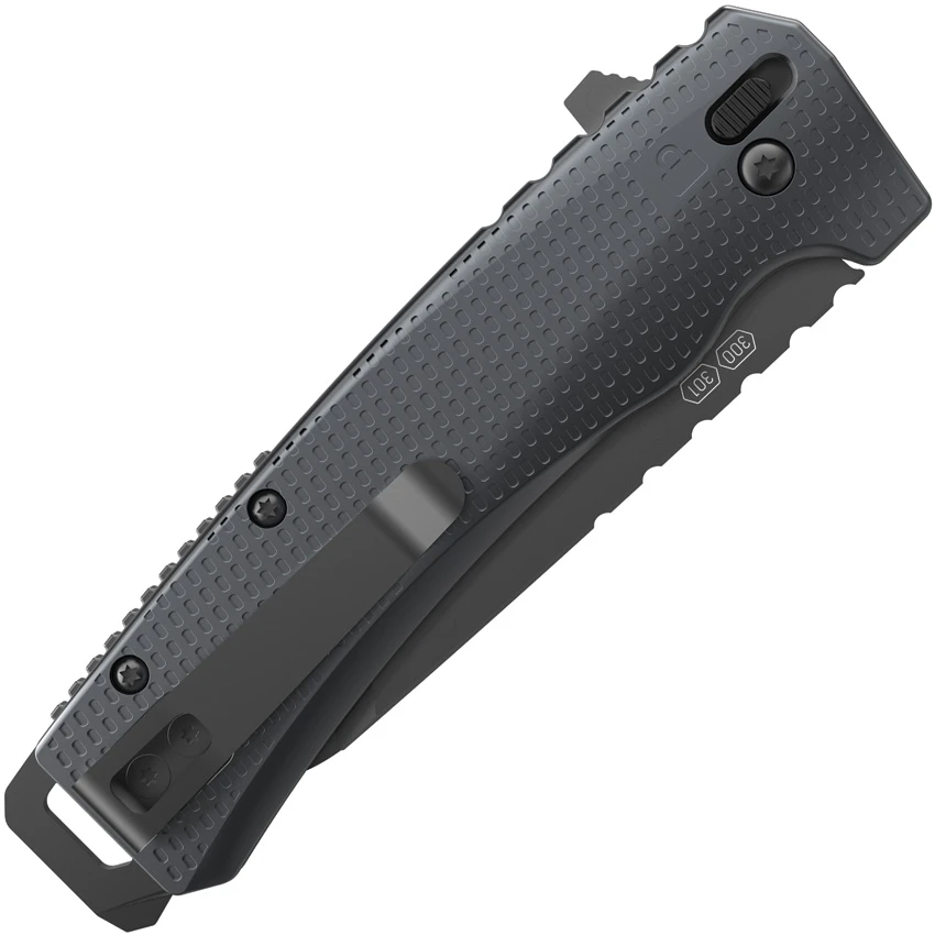 4.63″ (11.76cm) closed. 3″ (7.62cm) 420J2 stainless blade. Gray anodized aluminum handle. Extended tang. Lanyard hole. Pocket clip. Black oxide coated stainless blade holder. Push button blade changes. Blade holder cleaning tool. Blades included: (1) Saw; (1) Utility; (2) Sheepsfoot. Clam packed.