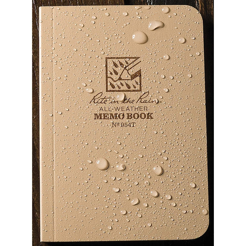 3 1/2″ x 5″ Memo Book. Side perfect bound. Tan Field-Flex cover. 56 sheets tan paper with Universal page pattern. Features Rite in the Rain paper which sheds water and enables you to write in any weather. Bulk packed with cardboard cover and hanging tab.