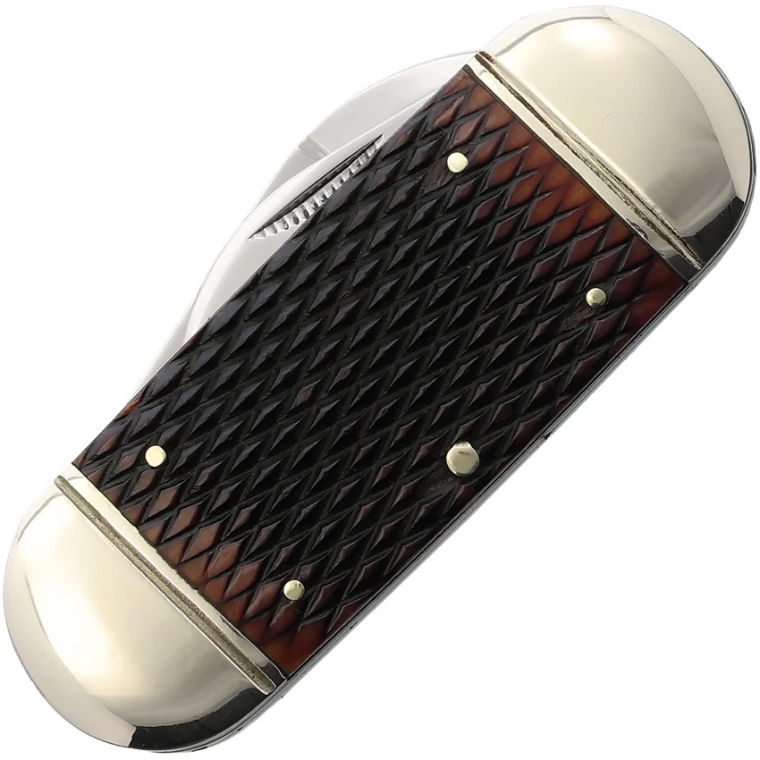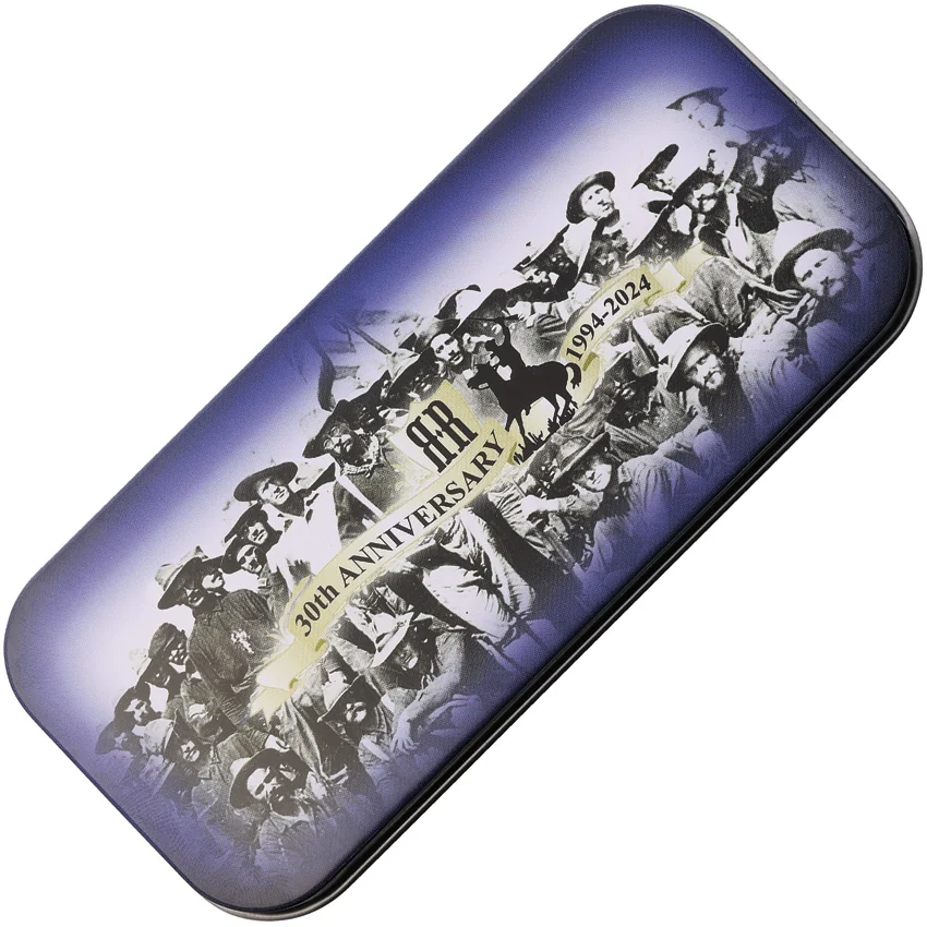 30th Anniversary Series. 3″ (7.62cm) closed. Mirror finish stainless spear and pen blades. Brown checkered bone handle. Nickel silver bolster(s). Inlay shield. Blade etching. Gift tin.