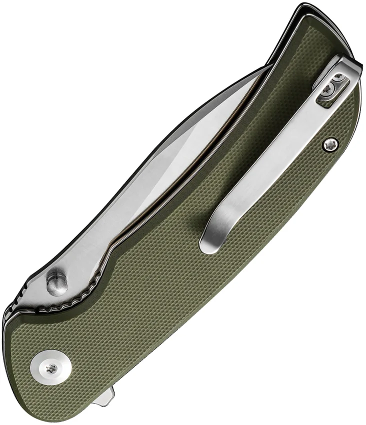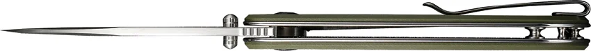 4.75″ (12.07cm) closed. 3.5″ (8.89cm) satin finish 9Cr18MoV stainless blade. OD green G10 handle. Extended tang. Thumb stud. Pocket clip. Boxed. No Amazon Sales