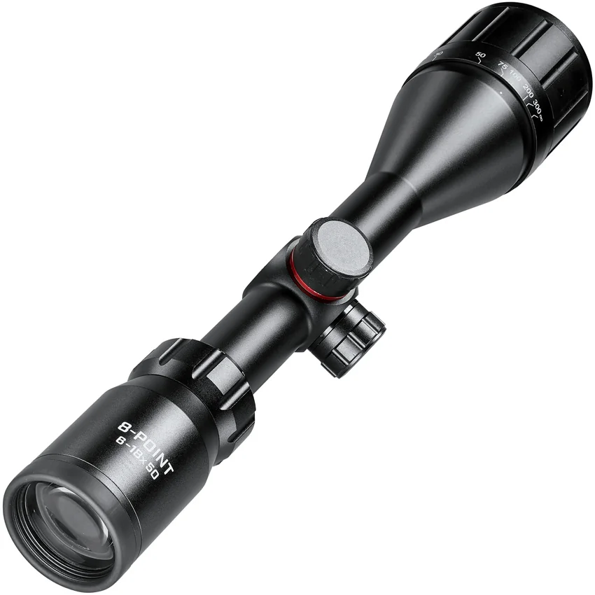 13.25″ overall. Truplex reticle. Actual magnification: 6-18x. Waterproof. Fogproof. Shockproof. Coated optics. 1″ Weaver style rings. SureGrip audible-click windage and elevation adjustments. Aluminum construction. Color: Black. May not ship International.