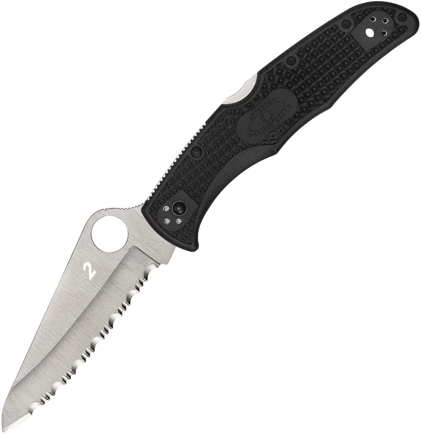 5″ (12.7cm) closed. 3.75″ (9.53cm) satin finish serrated H2 steel blade. Black bi-directional texture FRN handle. Lanyard hole. Thumb pull. Pocket clip. Boxed.