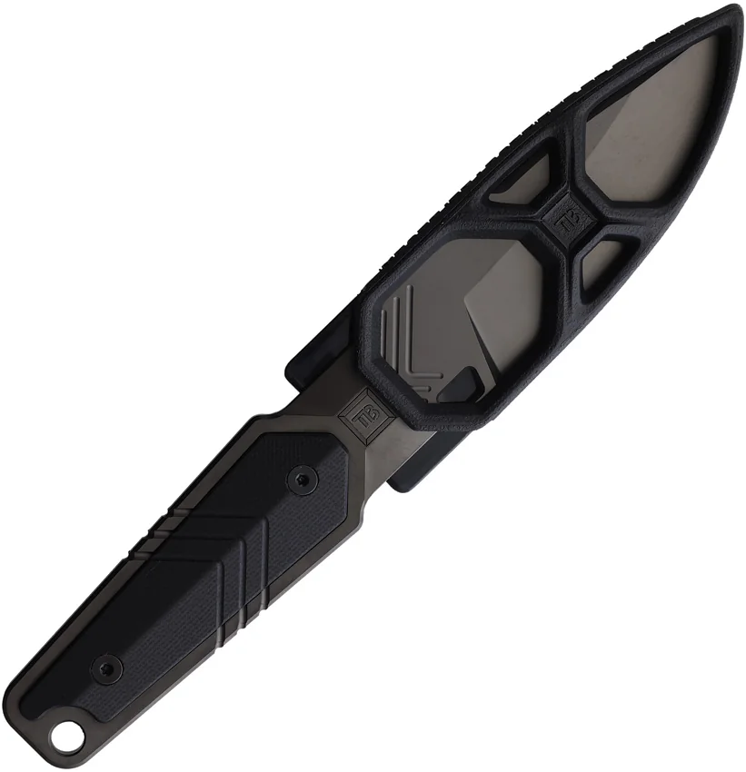 7.5″ (19.05cm) overall. 3″ (7.62cm) black PVD coated drop point blade. Black G10 handle. Full tang. Lanyard hole. 1.4528 steel blade. The first 250 of each model are numbered. Black injection molded sheath with magnetic attachment point and metal clip. Hardside carrying case.