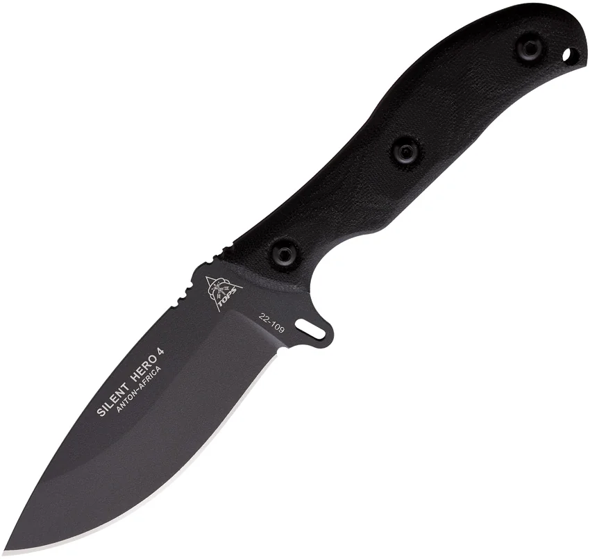 TOPS Knives Silent Hero 4 Fixed Blade Knife Black Smooth Micarta (4.25″ Black) Prices Online