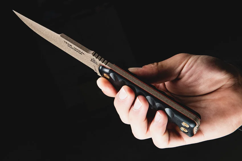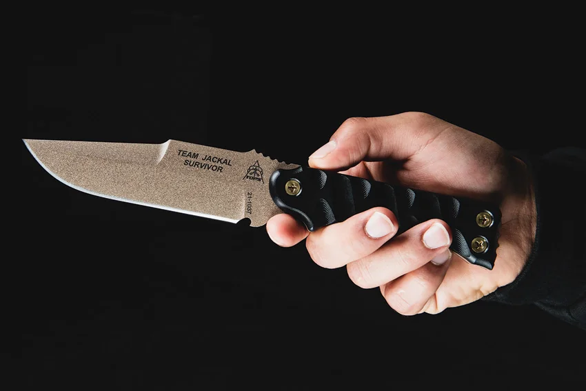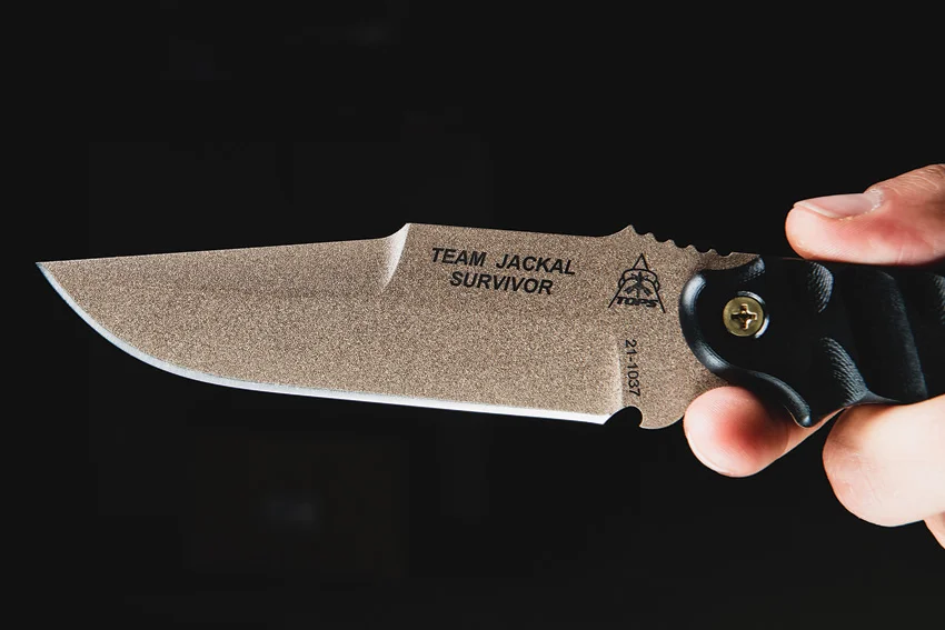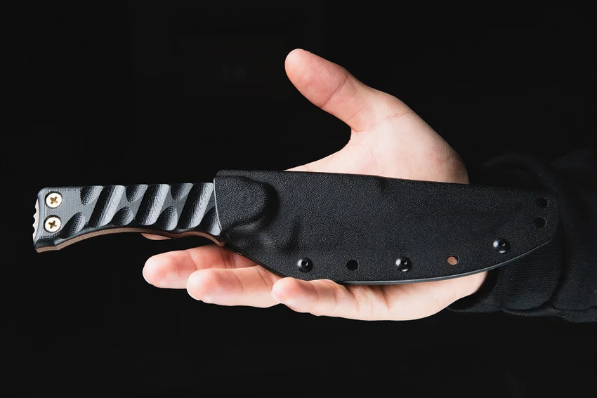 9 3/4″ overall. 5″ coyote tan coated 1095 high carbon steel blade with thumb jimping. Full tang. Black Rocky Mountain tread style G-10 handle. Black molded Kydex sheath with rotating spring steel sheath. Bulk packed.