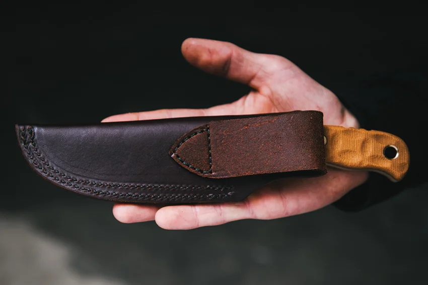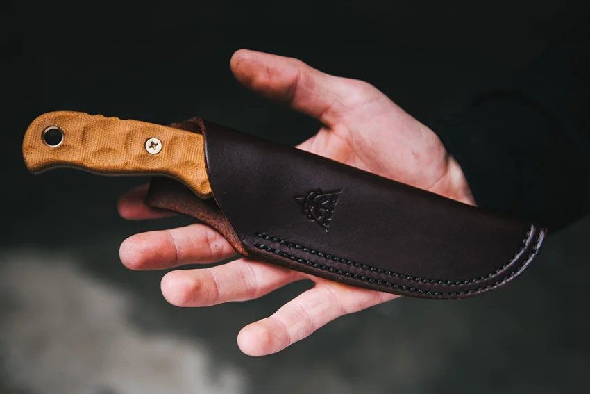 8 7/8″ overall. 4″ drop point blade. One-piece coyote tan traction coated 1095 tool steel construction. Textured tan micarta onlay handles. Lanyard hole. Tan leather belt sheath. Beaded keychain with black TOPS survival whistle. Bulk packed.