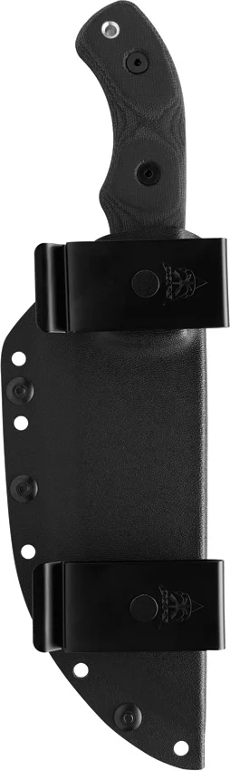 10.63″ overall. 5.5″ gray finish sawback 154CM stainless blade. Black canvas micarta handle. Full tang. Lanyard hole. Black Kydex belt sheath. Bulk packed.