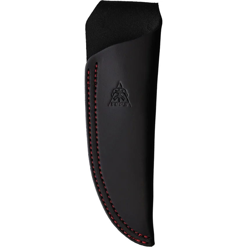 8 3/4″ overall. 4 1/8″ 1095 carbon steel blade with black traction coating. Full tang. Textured red/black G-10 handles. Enlarged lanyard hole. Black leather belt sheath. Comes with bonus TOPS Emergency Survival whistle. Bulk packed.