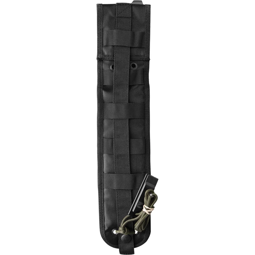 14″ (35.56cm) overall. 7.75″ (19.69cm) gray Cerakote finish 1095HC steel spear point blade. Tan canvas micarta handle. Full, extended tang. Lanyard hole. Double edge tip. Pry bar pommel. Dual spindle sockets for a bow drill. Black nylon MOLLE compatible belt sheath. Bulk packed.