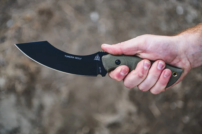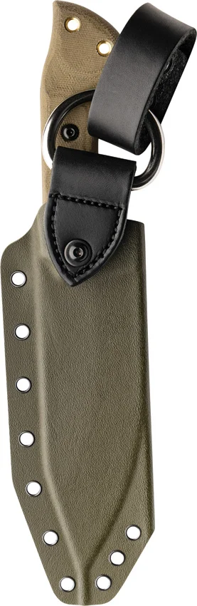 10.88″ (27.64cm) overall. 5.75″ (14.61cm) black traction coated 1095HC steel blade. Green canvas micarta handle. Full tang. Lanyard hole. Bulk packed.