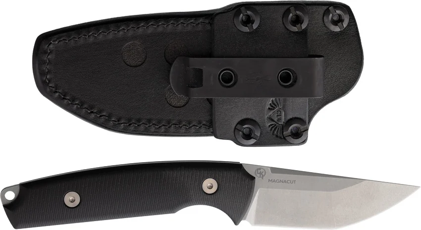 6.75″ (17.15cm) overall. 3″ (7.62cm) stonewash finish MagnaCut steel tanto blade. Black G10 handle. Full, extended tang. Lanyard hole. Black leather belt sheath. Boxed.