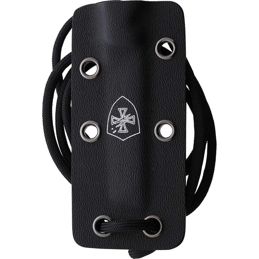 6.63″ (16.84cm) overall. 2.5″ (6.35cm) satin finish D2 tool steel drop point blade. Black finger grooved micarta handle. Belt/cord cutter. Full tang. Black Kydex neck sheath. Boxed.
