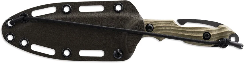 8.75″ (22.23cm) overall. 4.25″ (10.8cm) black oxide coated partially serrated CPM Cru-Wear steel spear point blade. Spitfire green sculpted G10 handle. Lanyard hole. Full, extended tang. Integrated spine clip. This Item may only be EXPORTED. It may NOT be sold to customers within the United States. Black Kydex belt sheath. Boxed.