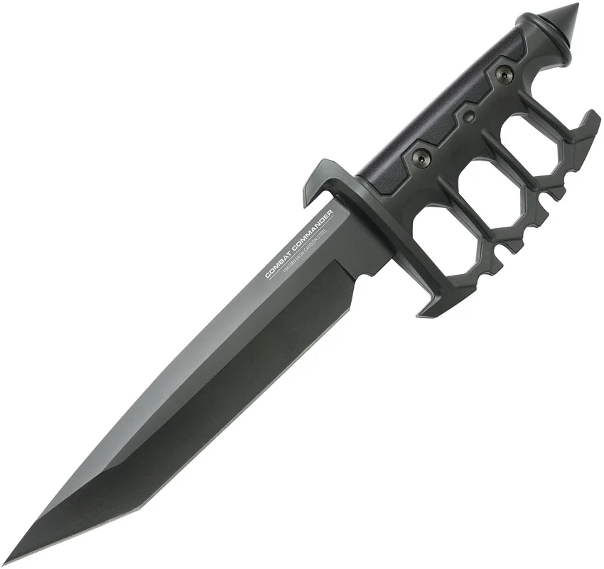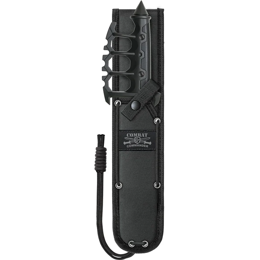 12.75″ overall. 6.75″ black finish stainless tanto blade. Black FRN handle. Glass breaker. Cast metal knuckle guard. Black nylon belt sheath. Boxed.