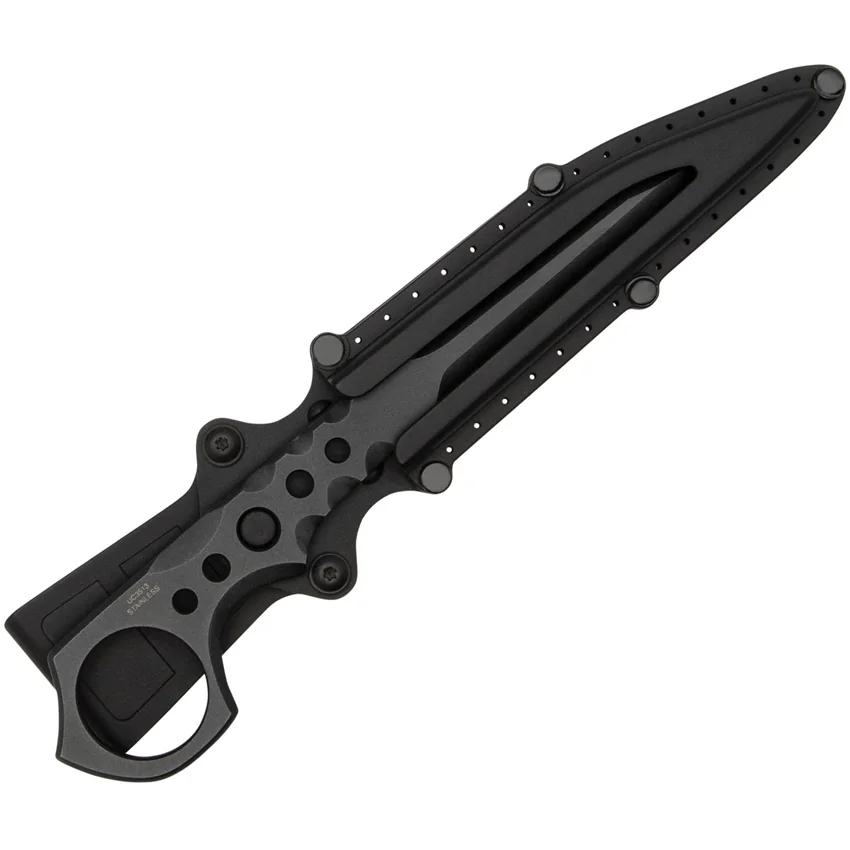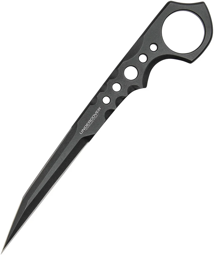 7.25″ (18.42cm) overall. 3.5″ (8.89cm) black matte finish 3Cr13 stainless blade. Handle has CNC-beveled edged and grooves for a secure grip and has an open-ring pommel and thru-holes. Injection molded nylon sheath with removable belt loop.