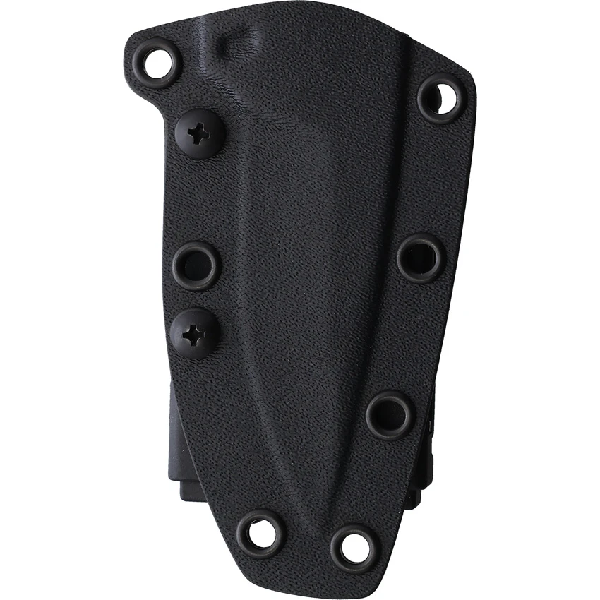 7.75″ (19.69cm) overall. 3″ (7.62cm) black coated stainless blade. Black G10 handle. Full, extended tang. Lanyard hole. Green line on handle. Comes in plastic box with O-ring seal. Black Kydex belt sheath. Boxed.